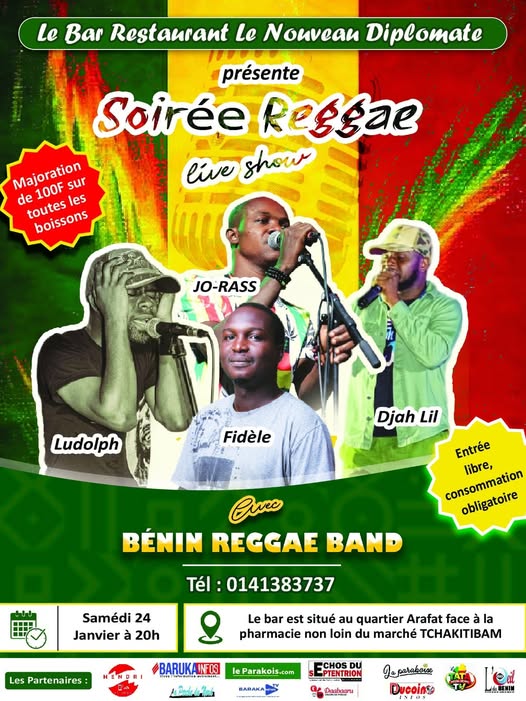Parakou vibrera au rythme du reggae ce samedi 24 janvier 2026. Le bar-restaurant Le Nouveau Diplomate, situé au quartier Arafat non loin du marché Tchakitibam, organise une grande soirée reggae live à partir de 20 heures, ouverte au grand public.
