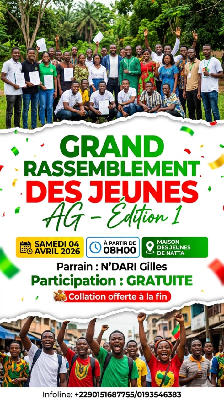 Boukombé, Atacora (Bénin) – L’Association Jeunes de Boukombé Réveillons-Nous organise son Assemblée Générale annuelle, un rendez-vous majeur qui réunira les jeunes leaders, membres et acteurs du développement local, le samedi 4 avril 2026 à partir de 10h00 précises à la Maison des Jeunes de Natta.