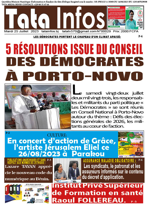 Le samedi vingt-deux juillet deux mil vingt-trois, les responsables et militants du parti politique « Les Démocrates...