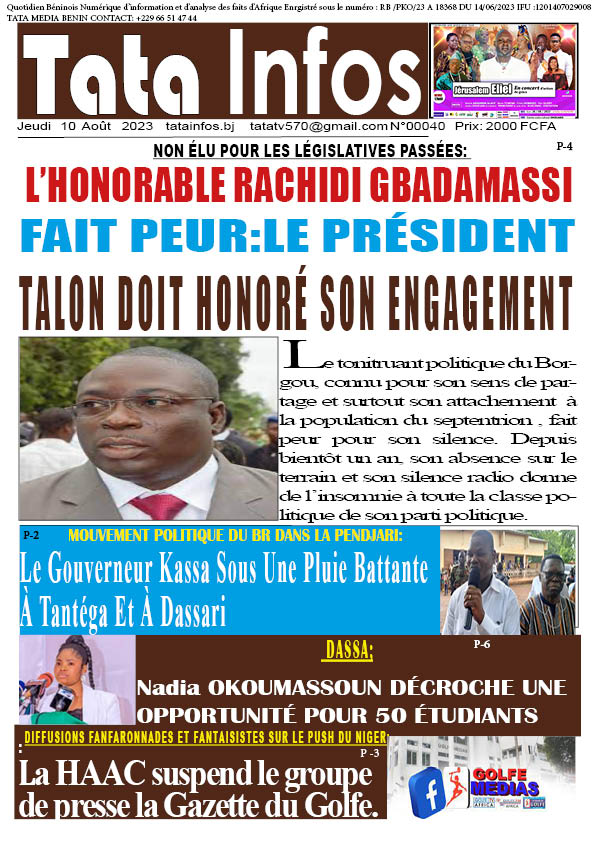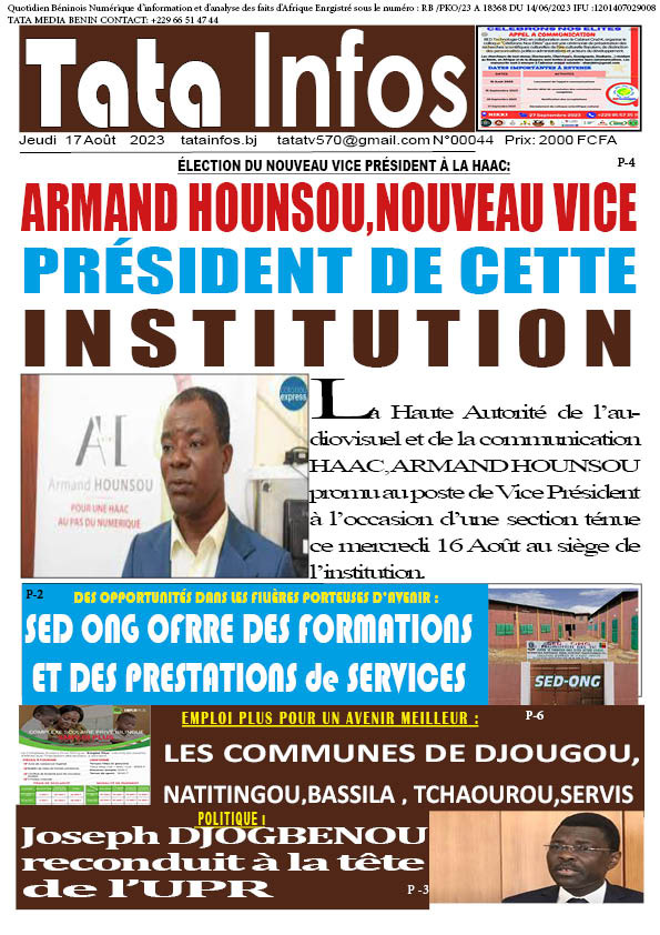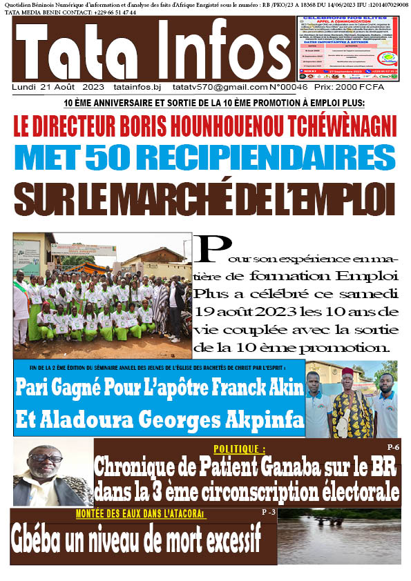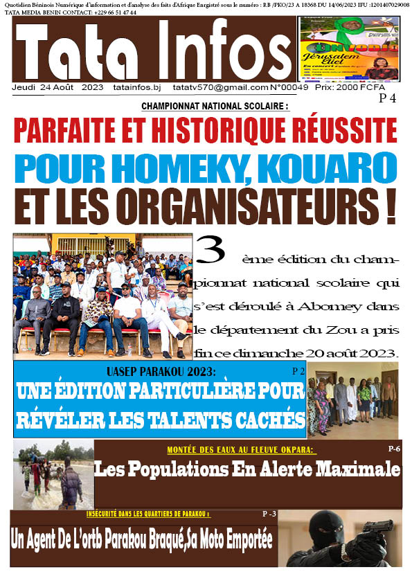 recevez le journal de tata infos de ce mercredi 23 Aout 2023
