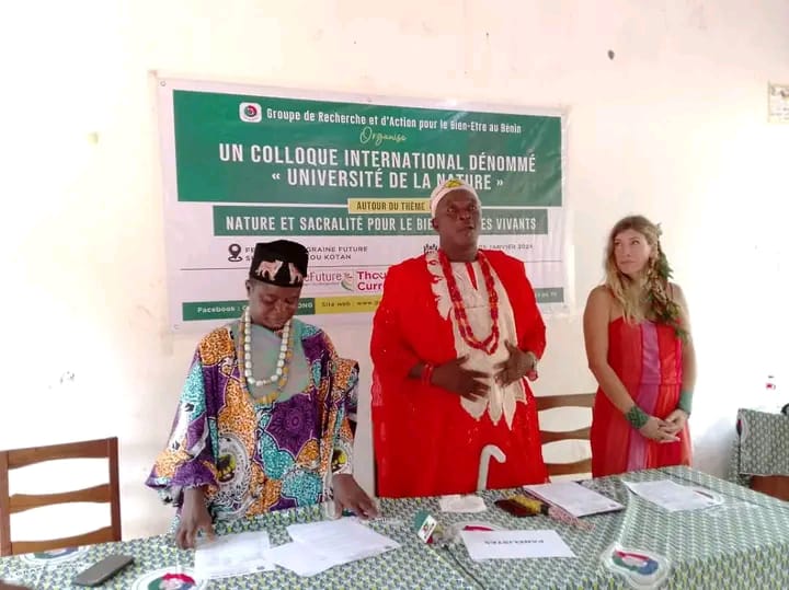 Dénommé <<Université de la nature>>, le colloque de Kotan dans la Commune d’Avrankou avait principalement pour objectifs de susciter des réflexions à partir des réalités culturelles et cultuelles traditionnelles, scientifiquement exploitables pour lutter contre le dérèglement climatique et offrir à l’homme un environnement sain et viable. Ces réflexions proposeront des solutions endogènes issues des pratiques ancestrales. Pour ce faire, il est important d’évaluer ensemble l’impact de la médecine traditionnelle, d’analyser la place du vodun dans la protection de la biodiversité, de faire l’état des lieux de la lutte contre les changements climatiques pour enfin, proposer des solutions endogènes utiles à la lutte contre les effets néfastes des changements climatiques>>. C’est ainsi que le président de GRABE-BÉNIN ONG, Appolinaire OUSSOU LIO a planté le décor desdites rencontres.