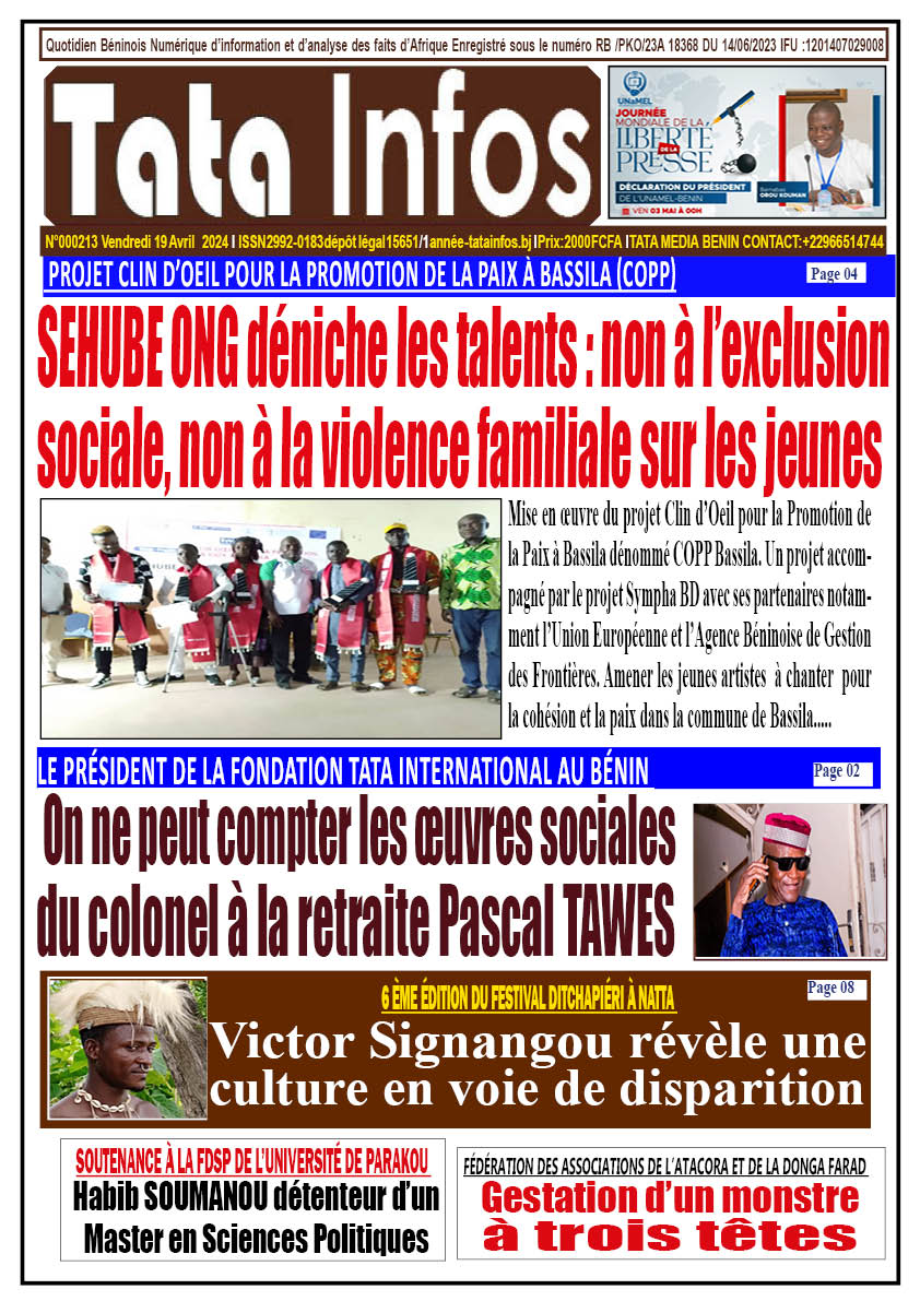 Actualité Revue de presse la une du journal tatainfos 4 mai 2024 Spread the love Navigation d’article Précédent JOURNÉE MONDIALE DE LA LIBERTÉ DE LA PRESSE : L’adresse du Président Barnabas Orou Kouman de l’Unamel-BéninSuivant PROJET CLIN D’ŒIL POUR LA PROMOTION DE LA PAIX À BASSILA (COPP BASSILA) Laisser un commentaire Annuler la réponseVotre adresse e-mail ne sera pas publiée. Les champs obligatoires sont indiqués avec *Commentaire * Nom * E-mail * Site web Enregistrer mon nom, mon e-mail et mon site dans le navigateur pour mon prochain commentaire. Δ Histoires connexes Le Nouveau Diplomate, nouveau carrefour du reggae à Parakou ce samediParakou vibrera au rythme du reggae ce samedi 24 janvier 2026. Le bar-restaurant Le Nouveau Diplomate, situé au quartier Arafat non loin du marché Tchakitibam, organise une grande soirée reggae live à partir de 20 heures, ouverte au grand public. Pour l’occasion, le Bénin Reggae Band sera à l’honneur, accompagné de plusieurs artistes de la scène reggae locale. Les voix de Ludolph, Fidèle, Jo-Rass et Djah Lil viendront enrichir ce live show, promettant un voyage musical entre titres engagés, mélodies apaisantes et sonorités roots, fidèles à l’âme du reggae. L’accès à la soirée est libre, avec une consommation obligatoire. Une légère majoration de 100 francs CFA sera appliquée sur les boissons, afin de soutenir l’organisation de l’événement et les artistes invités. À travers cette initiative, Le Nouveau Diplomate réaffirme son engagement en faveur de la promotion de la musique live et de la valorisation des talents locaux. Cette soirée reggae s’annonce comme un véritable moment de partage, de détente et de découverte pour les amoureux de bonne musique, dans une ambiance chaleureuse et festive. Un rendez-vous à ne pas manquer pour tous les passionnés de reggae et de culture urbaine à Parakou. Actualité Annonces Culture Le Nouveau Diplomate, nouveau carrefour du reggae à Parakou ce samediParakou vibrera au rythme du reggae ce samedi 24 janvier 2026. Le bar-restaurant Le Nouveau Diplomate, situé au quartier Arafat non loin du marché Tchakitibam, organise une grande soirée reggae live à partir de 20 heures, ouverte au grand public. Pour l’occasion, le Bénin Reggae Band sera à l’honneur, accompagné de plusieurs artistes de la scène reggae locale. Les voix de Ludolph, Fidèle, Jo-Rass et Djah Lil viendront enrichir ce live show, promettant un voyage musical entre titres engagés, mélodies apaisantes et sonorités roots, fidèles à l’âme du reggae. L’accès à la soirée est libre, avec une consommation obligatoire. Une légère majoration de 100 francs CFA sera appliquée sur les boissons, afin de soutenir l’organisation de l’événement et les artistes invités. À travers cette initiative, Le Nouveau Diplomate réaffirme son engagement en faveur de la promotion de la musique live et de la valorisation des talents locaux. Cette soirée reggae s’annonce comme un véritable moment de partage, de détente et de découverte pour les amoureux de bonne musique, dans une ambiance chaleureuse et festive. Un rendez-vous à ne pas manquer pour tous les passionnés de reggae et de culture urbaine à Parakou. 22 janvier 2026 Bénin : 21 nominations prononcées aux ministères de la Justice et du Numérique Actualité Nationale Bénin : 21 nominations prononcées aux ministères de la Justice et du Numérique 21 janvier 2026 Présidentielle au Bénin : les deux duos désormais fixés sur leur position sur le bulletin de vote Actualité Politique Présidentielle au Bénin : les deux duos désormais fixés sur leur position sur le bulletin de vote 21 janvier 2026