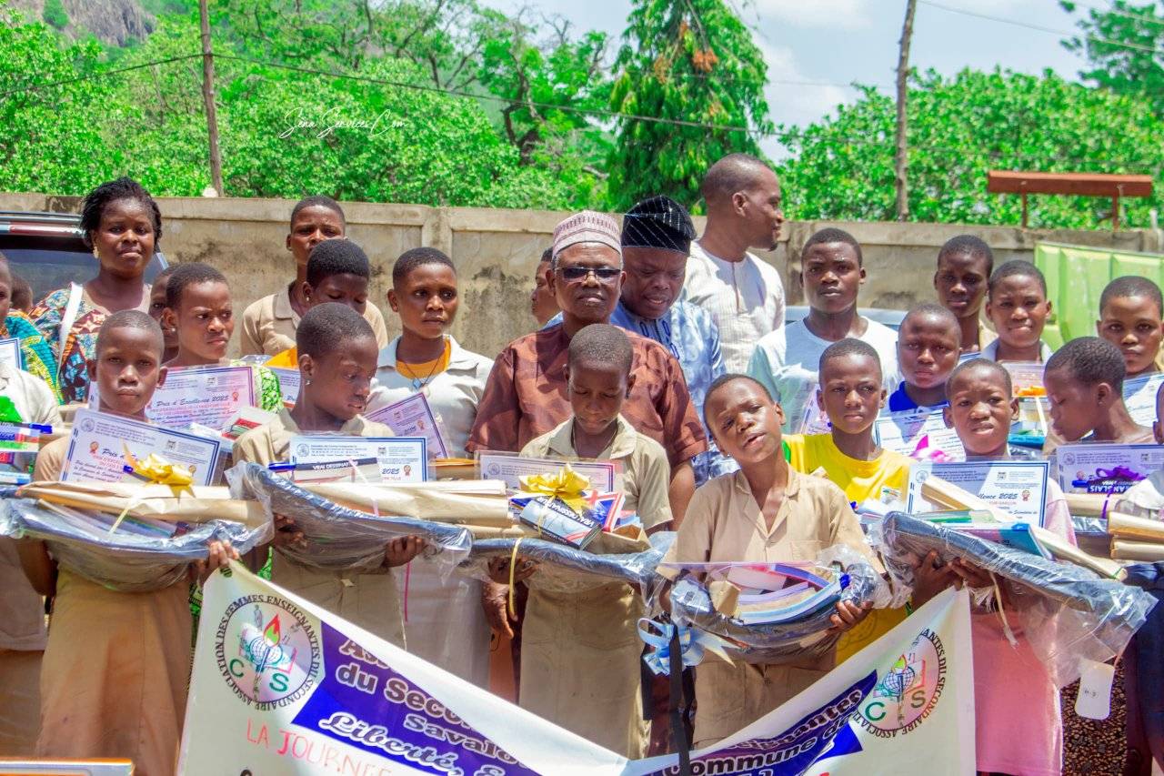 Lors de cette cérémonie, des élèves des collèges d’enseignement général public de la commune de Savalou et ceux du Lycée Technique Agro-pastoral de Kpataba , ont été honorés pour leurs résultats exceptionnels. Les récipiendaires, au nombre de 29, ont été récompensés avec des prix composés d’ouvrages didactiques soigneusement sélectionnés pour soutenir leur apprentissage et leurs futures études. Parmi ces prix figurent des annales, des livres de conjugaison, des livres de mathématiques, des trousses de dissection, des dictionnaires, des brouettes, des pelles, des capsuleurs, ainsi que des cahiers et des boîtes mathématicales ou vrais dessinateurs sans oublier des sacs au dos de qualité. Ces récompenses ont été pensées pour encourager les élèves à poursuivre leur quête d’excellence dans diverses matières scolaires et pour ….