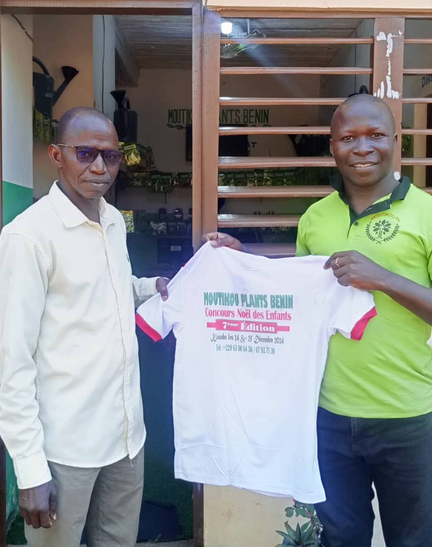 Cette visite marque encore un très grand soutien moral pour le PDG de l’entreprise Moutikou Plants Bénin. Mr Frédéric N’gnonfè YEFOUNRI sidéré par le dynamisme et l’endurance Entrepreneuriale de son du PDG de l’entreprise Moutikou Plants Bénin il a tenu à apporter tout ces encouragements et prières à l’endroit du PDG Moutikou Plants Bénin. À l’issue de plusieurs sages conseils prodigués par le directeur à l’endroit du PDG ce fut l’occasion pour le directeur de soutenir l’événement la 7ème édition du concours noël des enfants et nuit verte que Moutikou Plants Bénin à kouaba les 24 et 25 décembre 2024 en se procurant des lacostes du dit événement